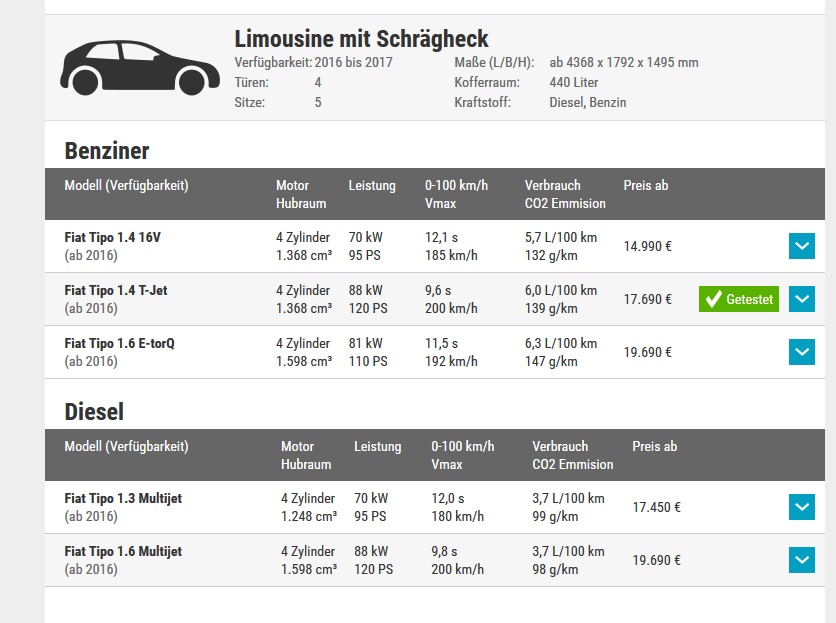Also meine 1,6er MJD-Limo zieht IMMER bis 200, und je nach Tagesform auch 205 oder bis zu 210, darüber wird aber nix mehr da geht den 120PS dann doch die Luft aus. Gut ich hatte den Tipo laut Tacho mal bei 212 oder so, aber alles über 200 dauert etwas. Die Tachoabweichung ist übrigens wirklich sehr gering, mit mobilem Navi und Handy-GPS gemessen immer im Rahmen von 2 bis 5 km/h (Geschwindigkeitsabhängig). Das war früher mal anders, auch bei meinem vorherigen Auto (Croma) war die Abweichung größer.
