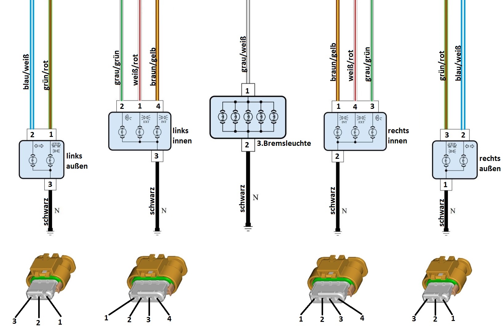 Habe dann auch das Kabel für die Rückfahrscheinwerfer gefunden. Meine das es orange/weiß war.