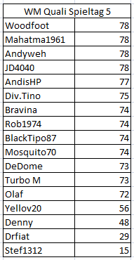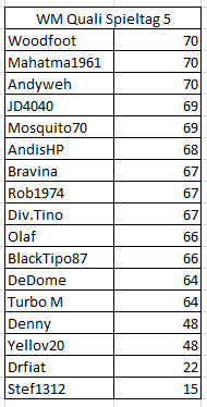 Aktueller Zwischenstand des 5. Spieltags!