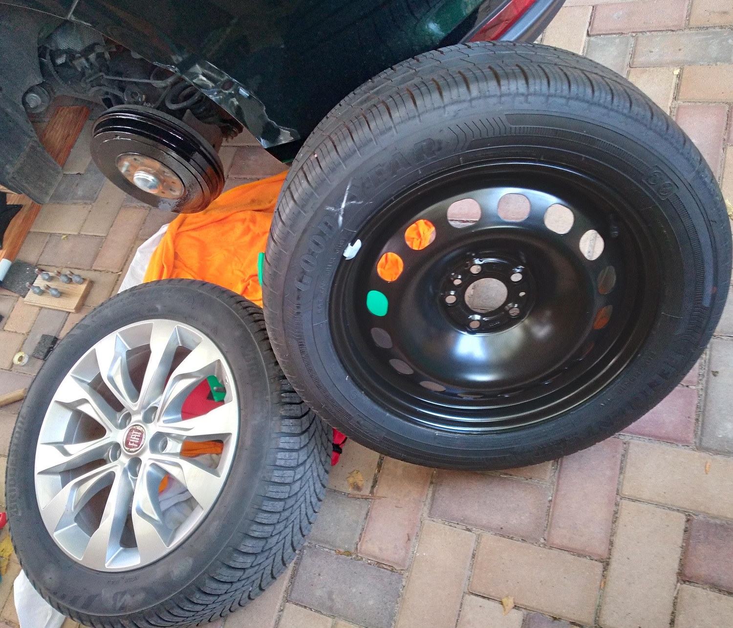 Und gleich mal probiert, ob ich im Notfall das Ersatzrad zu wechseln schaffe...