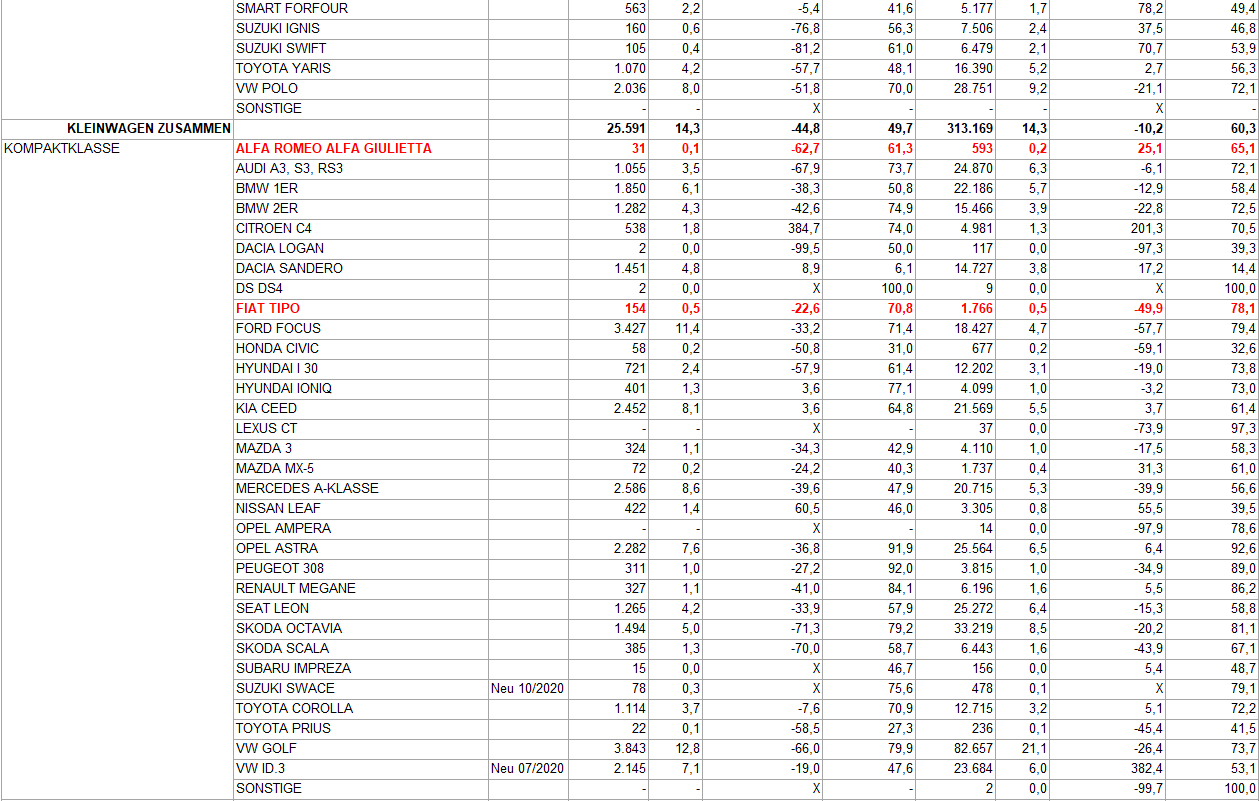Nur mit Tipo, Panda & Co stünde der Hersteller also ziemlich schwach da.Generell ist Fiat klar im Aufschwung, vor einem Jahr war man noch deutlich hinter Mitbewerbern wie Opel, heute hat man die Rüsselsheimer schon deutlich abgehängt.