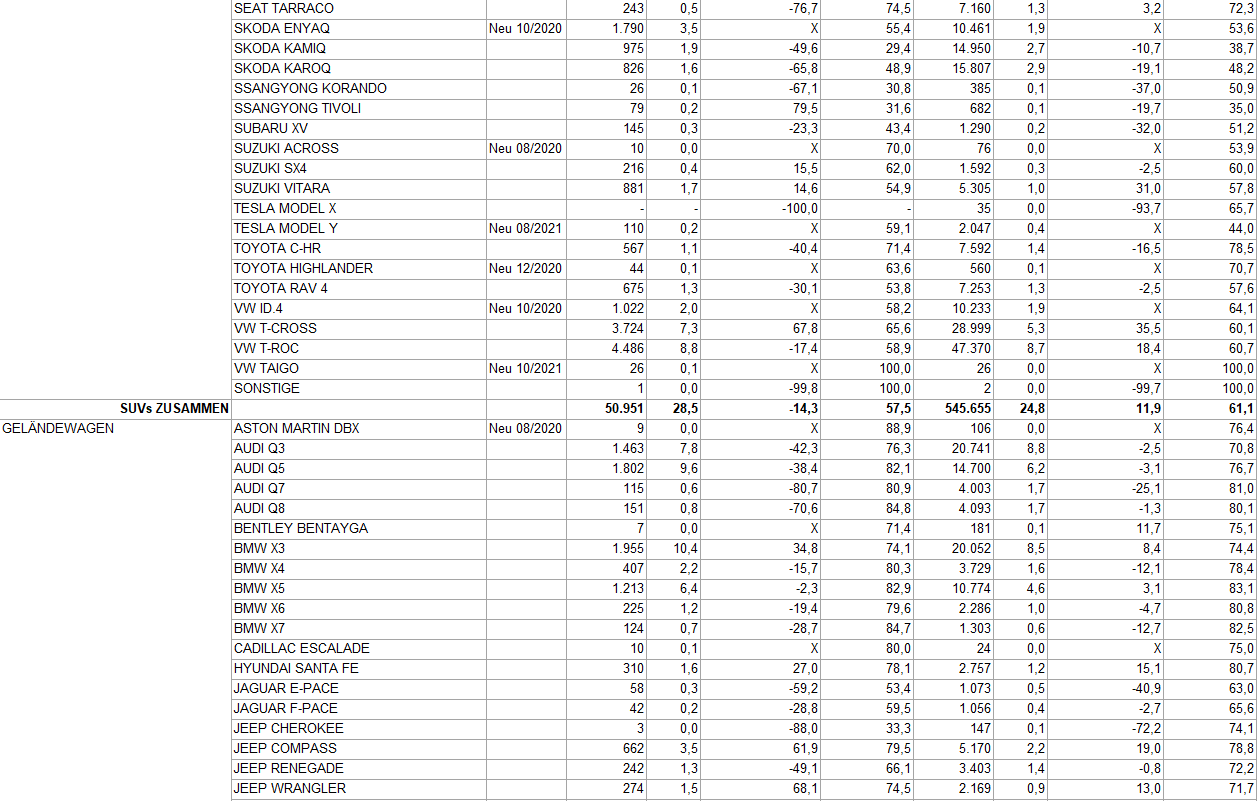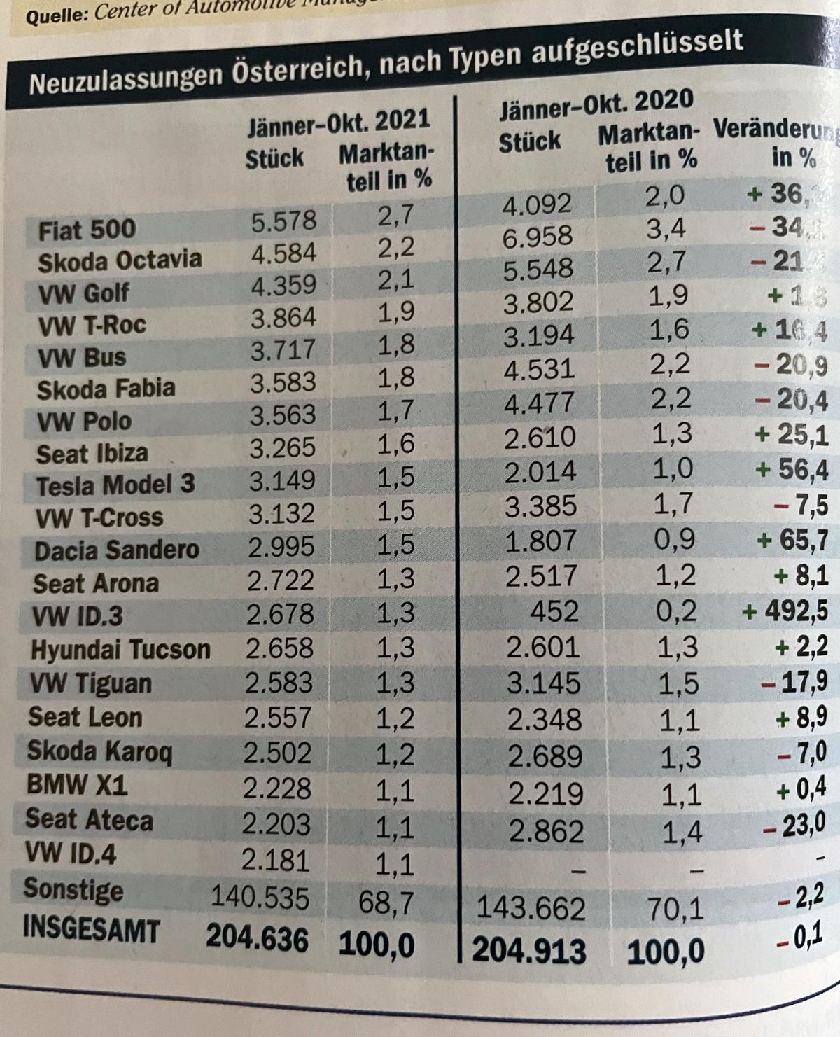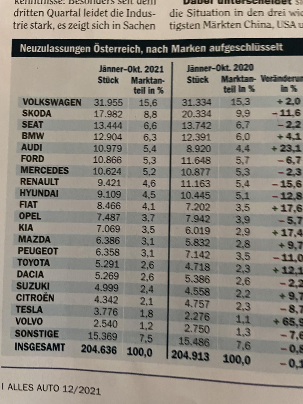 hier die aktuellen Zahlen bis Ende Oktober aus Österreich (Quelle: AllesAuto).