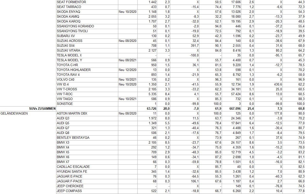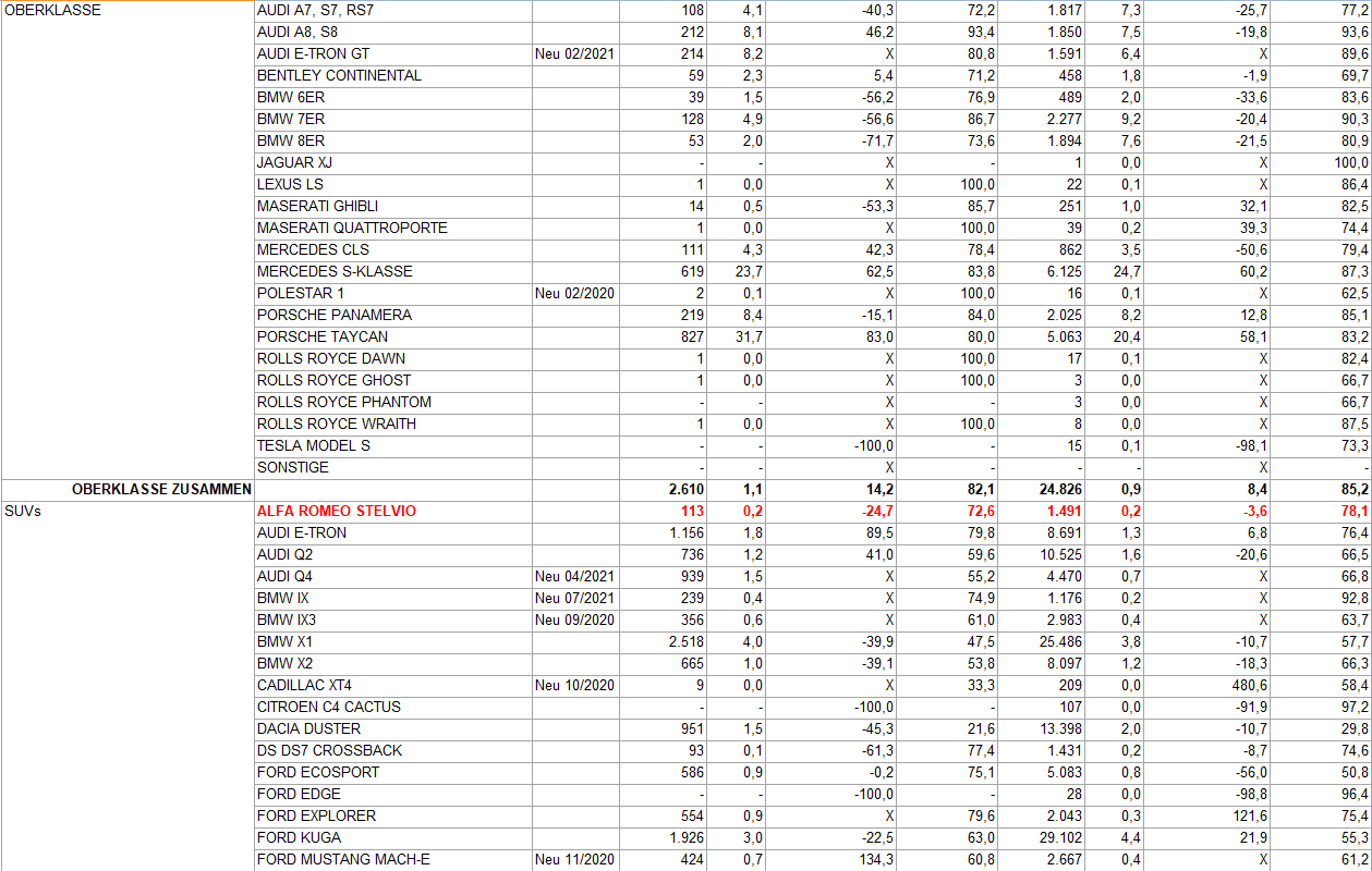 Gerade mal etwas über 2000 Autos im ganzen Jahr, dass nicht viel