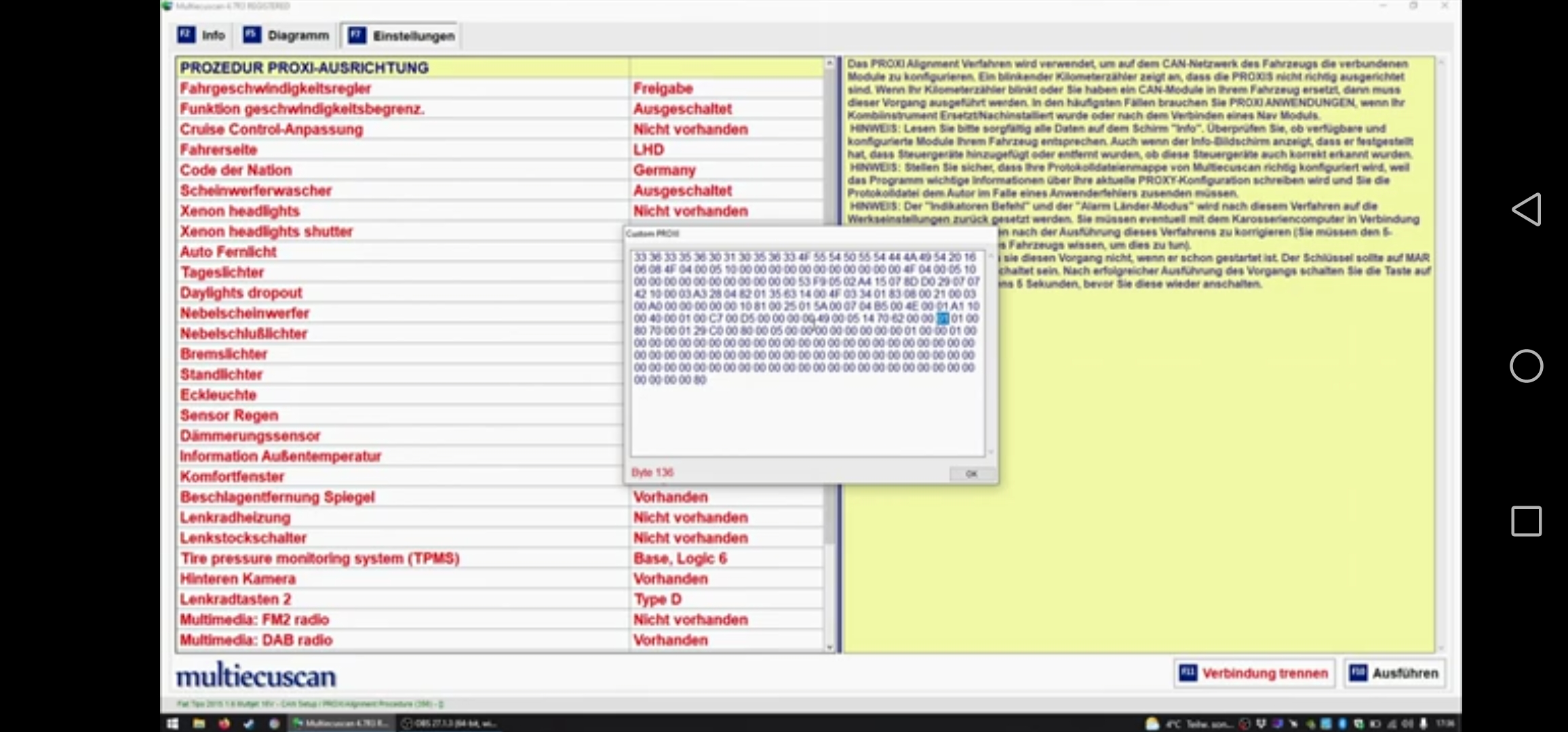 Moin Leute. Bräuchte mal bißchen Mitarbeit von einigen von euch. Speziell von denen die Multiecuscan besitzen. Lest mal bitte eure Proxykonfiguration aus und lasst mir die bitte per PN zukommen. Dazu bitte auch die Fahrzeugdaten (Version, Motor, Getriebe) und ganz wichtig alle Ausstattungsdetails (welche Scheinwerfer, Nebelscheinwerfer ja/nein, Tempomat ja/nein, ACC ja/nein, Notbremsassistent ja/nein, automatisch abblenbarer Rückspiegel ja/nein, Start/Stopp ja/nein, Start/Stopp dauerhaft abschaltbar über den Knopf oder muss nach jedem Fahrzeugsstart erneut der Knopf gedrückt werden, Sitzheitzung, welches Uconnect ist verbaut, Navi ja/nein, Carplay/Android Auto ja/nein, Livedienste ja/nein, Ecodrive ja/nein, Regensensor ja/nein, usw. usw) alles was euch an Ausstattung und Funktionen noch so einfällt. Seit bitte so genau wie möglich. Wer noch einen 500 (Abarth)oder einen Jeep Renegate besitzt bitte das ganze davon auch. Die Proxykonfiguration liest man wie folgt aus. Multiecuscan mit Fahrzeug verbinden. Dann den Boardcomputer aufrufen. Dort mit Can Setup/Proxy Alignment verbinden. Dann I'm nächsten Fenster welches sich öffnet auf Einstellungen klicken. Danach strg+alt+c drücken und dann öffnet sich ein kleines Extra Fenster (custom Proxy). Die dort angezeigten Zahlen/Buchstaben ist die Proxykonfiguration. Diese bitte markieren, speichern und mir zukommen lassen. Und einen Screenshot von allen Einstellungen bitte noch. Auf dem Bild im Hintergrund alles was rot geschrieben ist sind die Einstellungen die ich benötige und die Zahlen/Buchstaben in dem kleinen Fenster. Bitte soviele wie möglich mitmachen. Auch bzw. besonders Leute die einen Facelift haben. Danke
