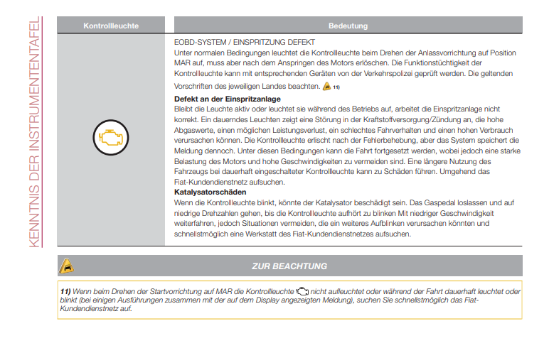 Ich wusste bis dato gar nicht, dass die Leuchte auch blinken kann. Dachte immer, sie leuchtet bei einer Störung konstant auf.
