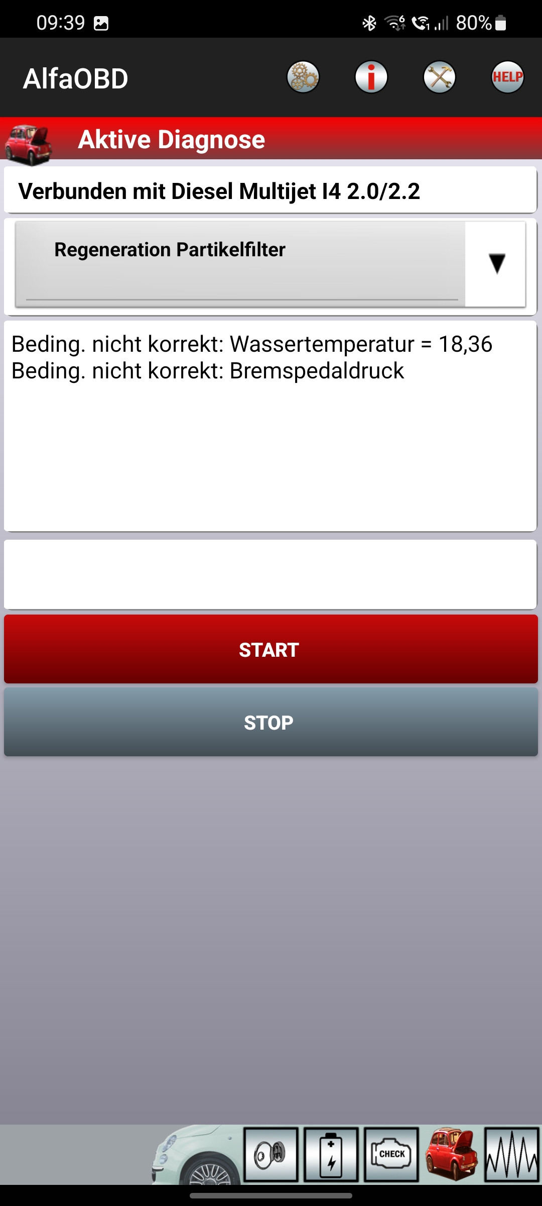 Problem ist jetzt, wenn man eine DPF Regeneration einleiten möchte, das immer wieder in der App angezeigt wird, dass die Bedingungen nicht erfüllt sind: Bremspedaldruck.