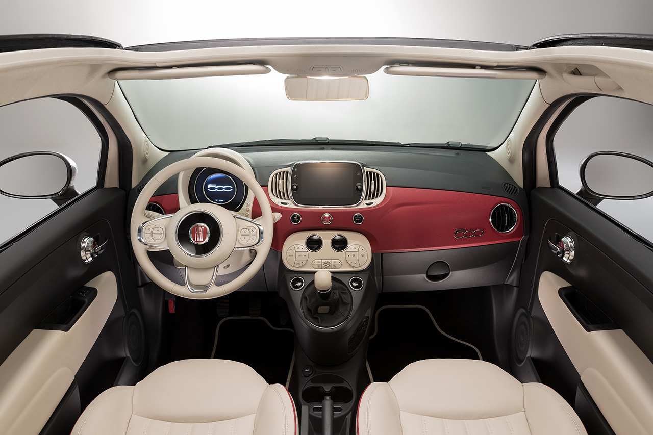 Das Design des neuen Sondermodells zum 60. Geburtstag des Fiat 500 ist etwas ganz Besonderes. Es erinnert mit einer ganzen Reihe von exklusiven Details an seinen legendären Vorgänger. Dazu zählen beispielsweise die mit Vinyl bezogene Armaturentafel, das Markenlogo im klassischen Design am Kühlergrill, auf der Kofferraumhaube und auf dem Lenkrad sowie die Chromspangen auf der vorderen Haube. Das ausschließlich als Cabriolet lieferbare Fiat 500 Sondermodell fährt serienmäßig in Zweifarben-Lackierung Dolcevita vor: in drei Schichten aufgetragenes Weiß für den Karosseriekörper, Elfenbein für Motorhaube und Dachsäulen. Eine trennende Linie in Grau und Burgund unterstreicht den Bicolore-Effekt, auch die Kofferraumhaube ist Grau lackiert. Das Sondermodell ist für den deutschen Markt auf exakt 560 Exemplare begrenzt, die mit einer speziellen Plakette zertifiziert sind. Bestellungen des Sondermodells sind in Deutschland ab Mitte März möglich.