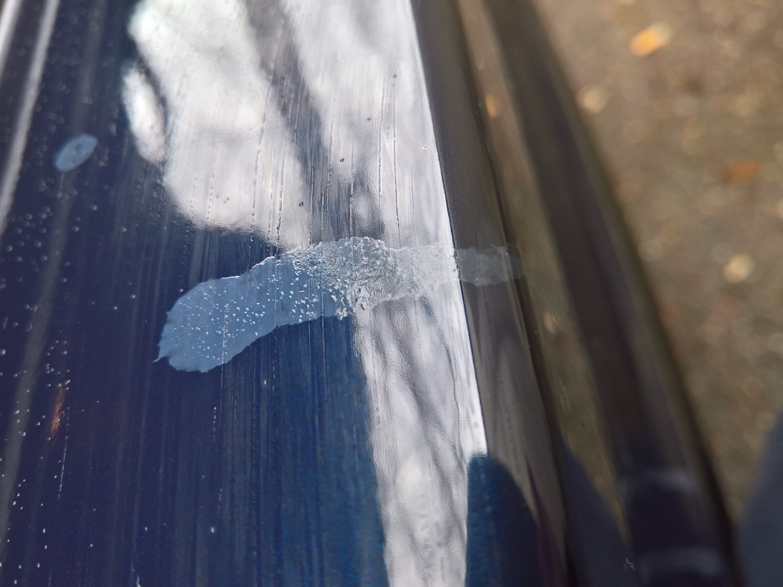 Tja und jetzt habe ich auch auf einmal Flecken im Lack, die Aussehen wie wenn etwas drüber gelaufen ist!