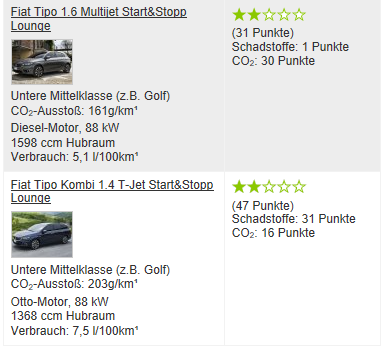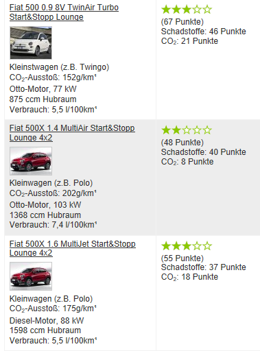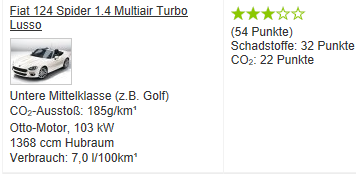 Oha die beiden Modelle scheinen, zumindest unter den Bedinungen des ADAC wirklich kleine Dreckschleudern zu sein! Interessant auch wie massiv die Verbräuche abweichen von den Werksangaben! Mich würde interessieren, wie der 1.4 16V abgeschlossen hat, ist er ja laut Fiat weit hinter diesen genannten Modellen, was die Energieklasse angeht!