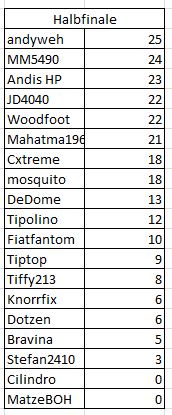 Mit der 1. Stimme legt ihr den Sieger des Spieles fest, für die richtige Wahl gibt es einen Punkt.