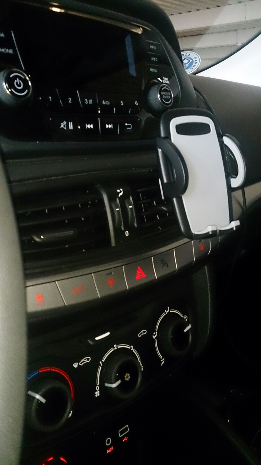 Die Lüftungsgitter sind nämlich zu leichtgängig, hängt da einen Halter rein und das Handy dran - siehe unten, also Lüftungsgitter nach unten verstellt ergo Handy zeigt auch schräg nach unten, nix mit aufs-Display-gucken.