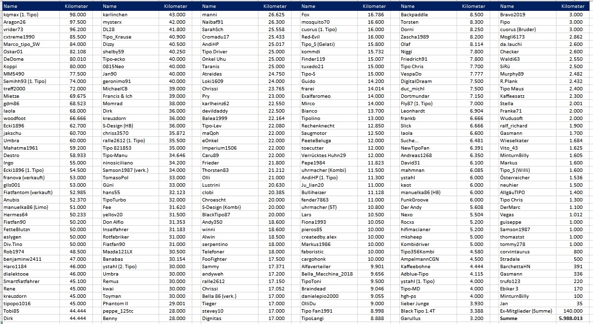Wie viel Tipo Kilometer habt Ihr schon geschafft?