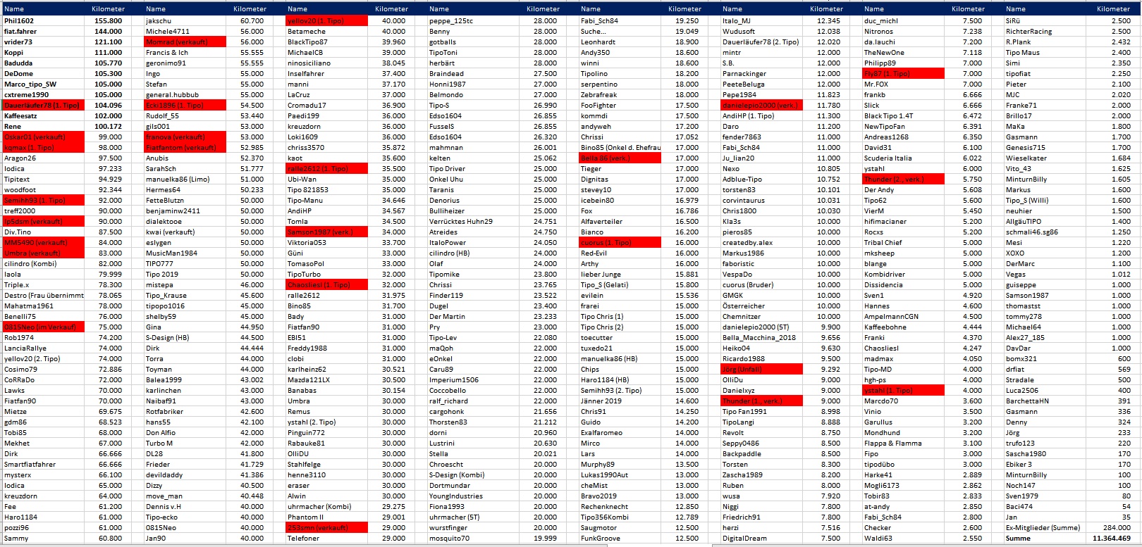 Wie viel Tipo Kilometer habt Ihr schon geschafft?