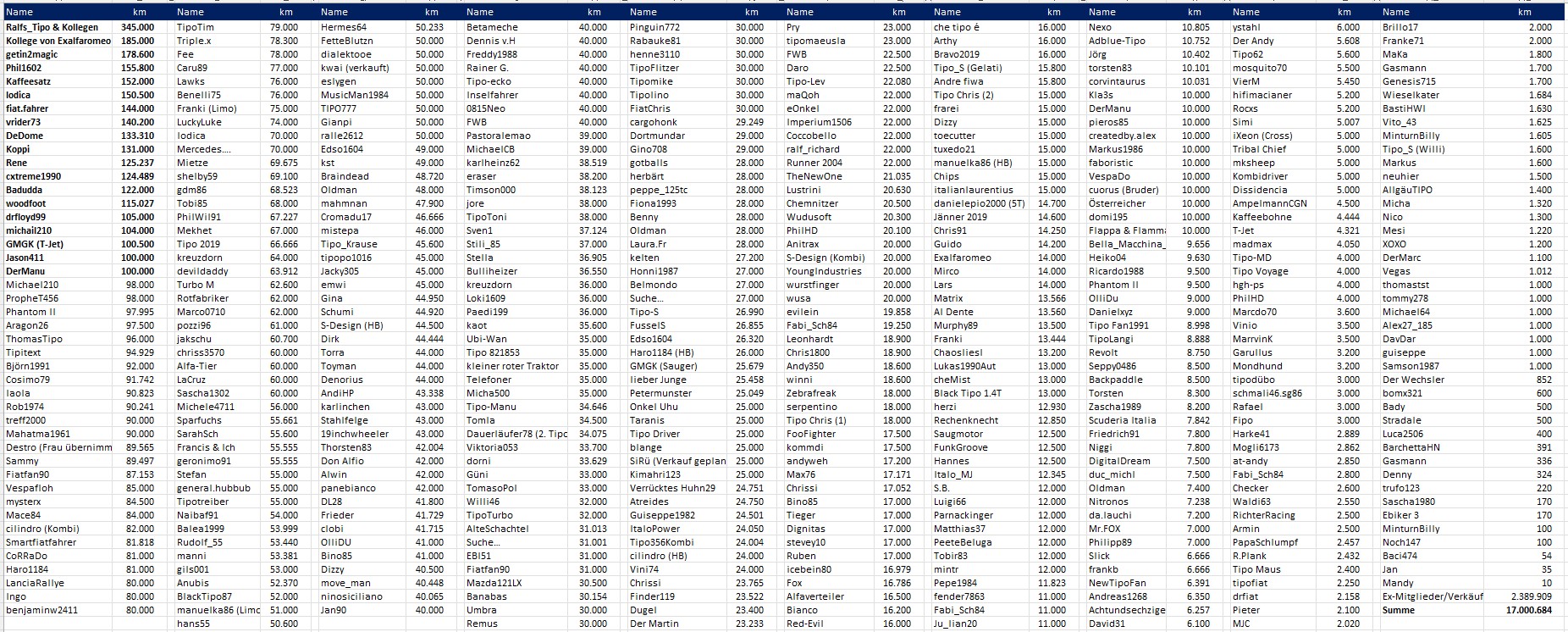 Wir haben jetzt 16.990.521 Kilometer. Wer macht die 17 Mio. voll!?