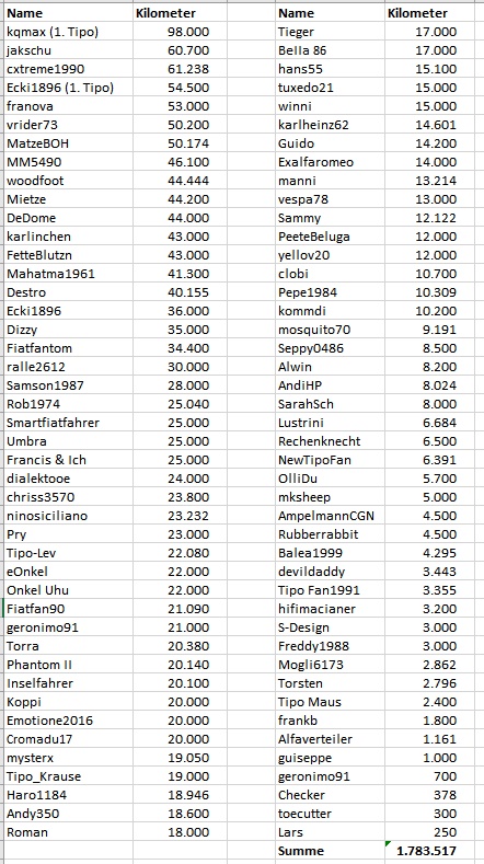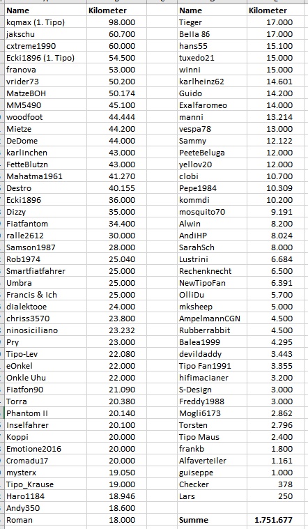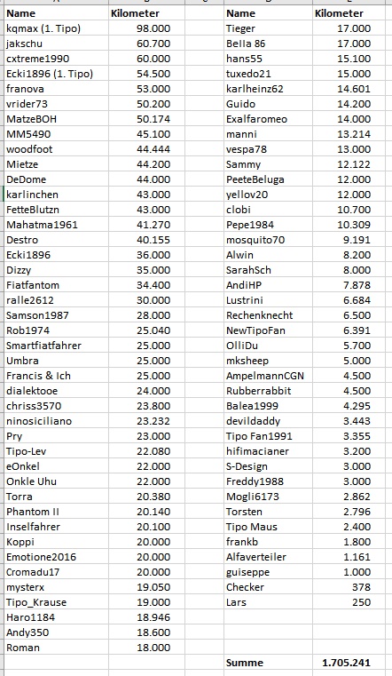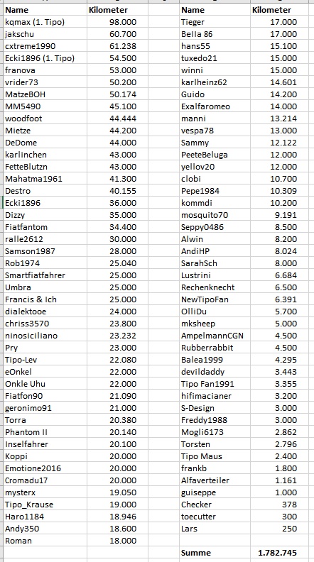 Wie viel Tipo Kilometer habt Ihr schon geschafft?