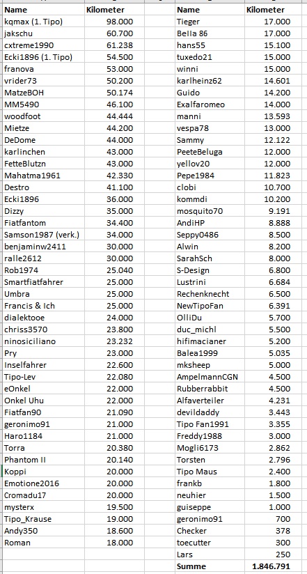 Wie viel Tipo Kilometer habt Ihr schon geschafft?