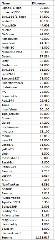 Stelle gerade fest, dass ich in der Kilometerfressertabelle garnicht vorkomme
