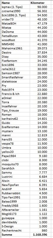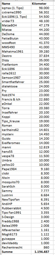 Wie viel Tipo Kilometer habt Ihr schon geschafft?