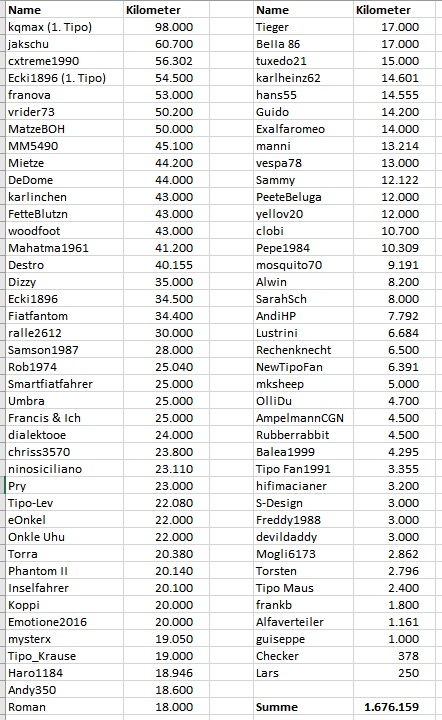 Wie viel Tipo Kilometer habt Ihr schon geschafft?