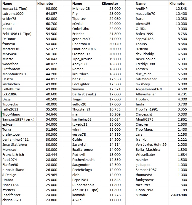 Wie viel Tipo Kilometer habt Ihr schon geschafft?