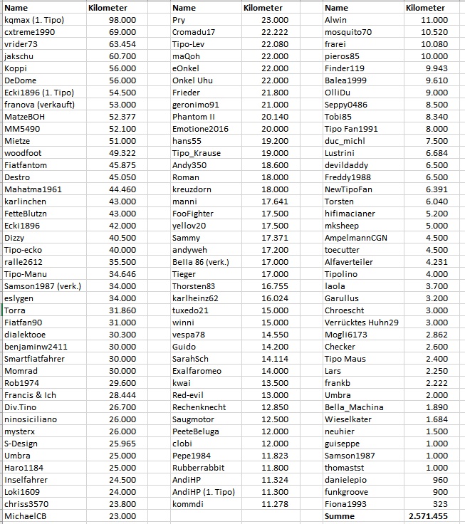 Früher im Außendienst bin ich ca. 50-55000 KM im Jahr gefahren....und wenn man dann noch berücksichtigt das ich nun seit 9 Monaten Krank bin fahre ich doch recht viel..... seit Anfang April bis heute 16500 KM.....