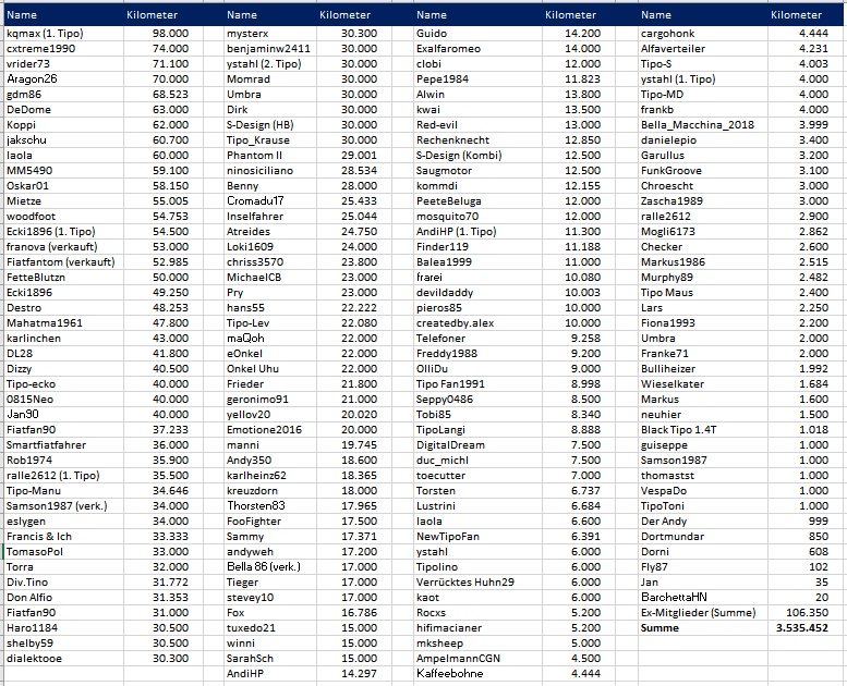 Wie viel Tipo Kilometer habt Ihr schon geschafft?