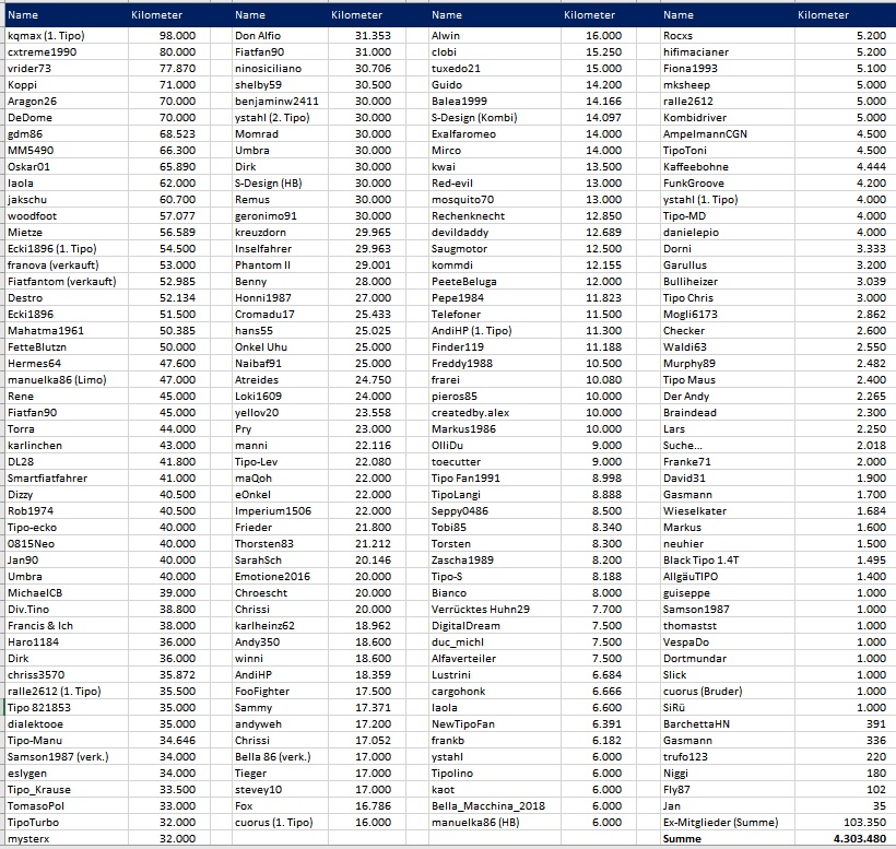 Wie viel Tipo Kilometer habt Ihr schon geschafft?