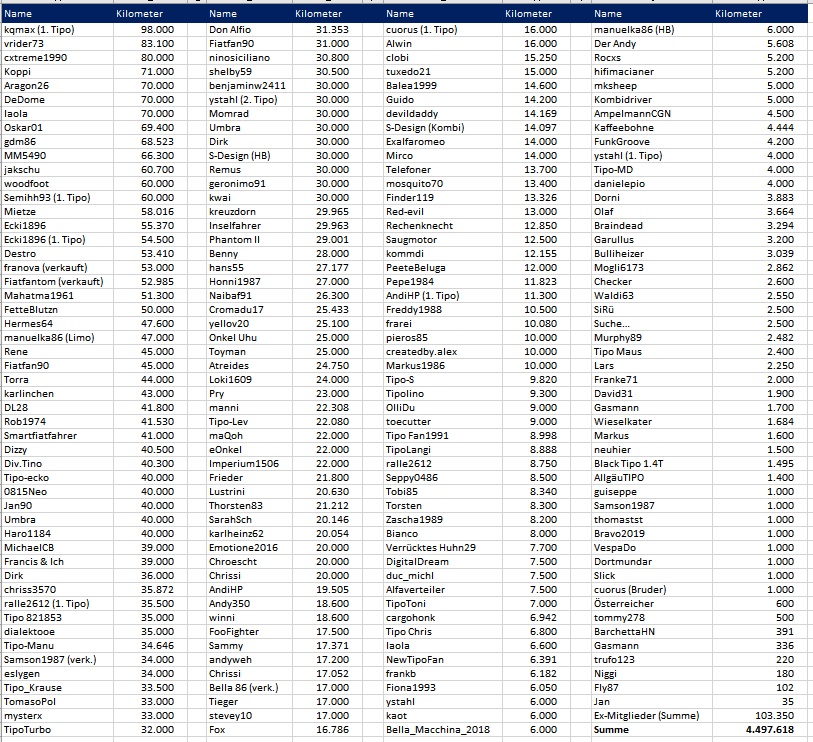 Sind jetzt bei 4.496.568 Kilometern. Ralf wurden 100 km abgezogen wegen Themenverwässerung. ![]()