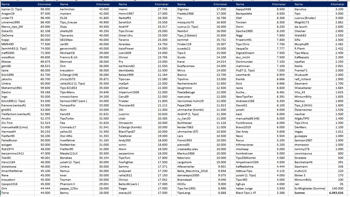 Wie viel Tipo Kilometer habt Ihr schon geschafft?