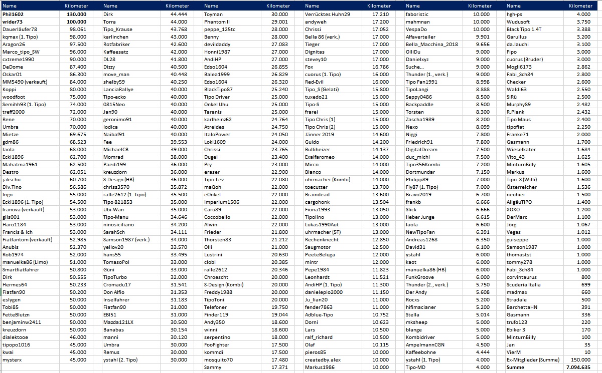 Wie viel Tipo Kilometer habt Ihr schon geschafft?