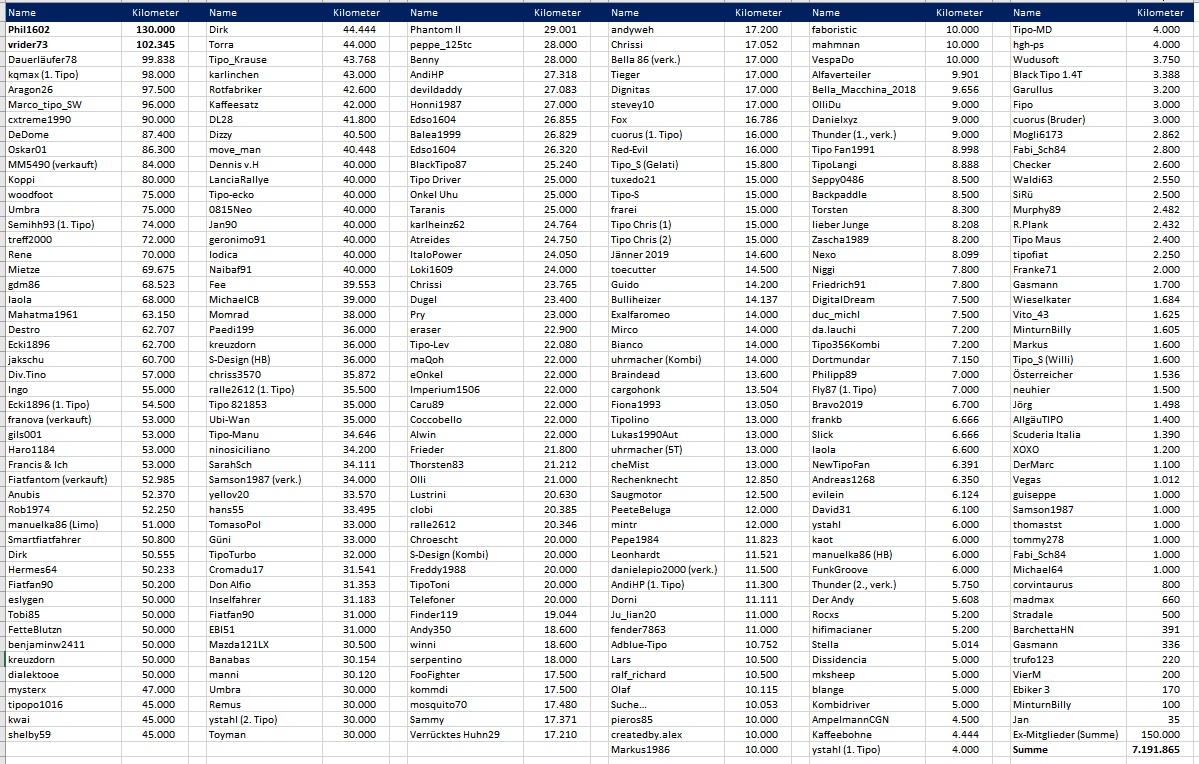 Wie viel Tipo Kilometer habt Ihr schon geschafft?