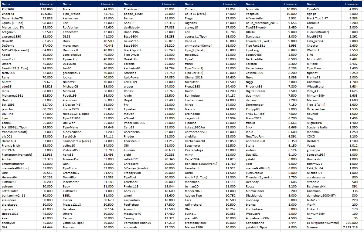 Wie viel Tipo Kilometer habt Ihr schon geschafft?