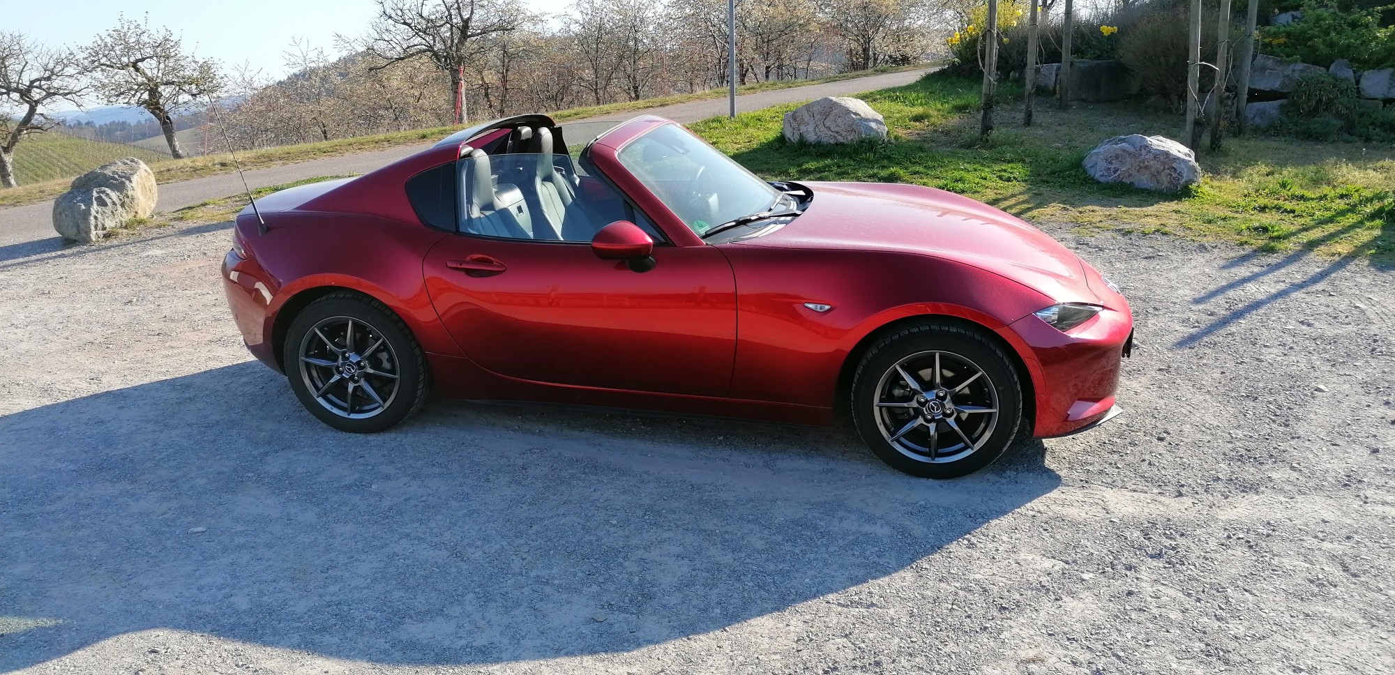 Wobei der hier abgebildete MX-5 der RF ist und damit das eher selten anzutreffende Modell mit dem versenkbaren Dach und den feststehenden Finnen. Der "normale" MX-5 hat nach wie vor ein Stoffverdeck und ist nach dem Zurückklappen des Verdecks völlig offen.