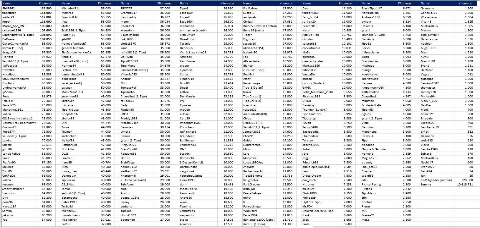 Wie viel Tipo Kilometer habt Ihr schon geschafft?