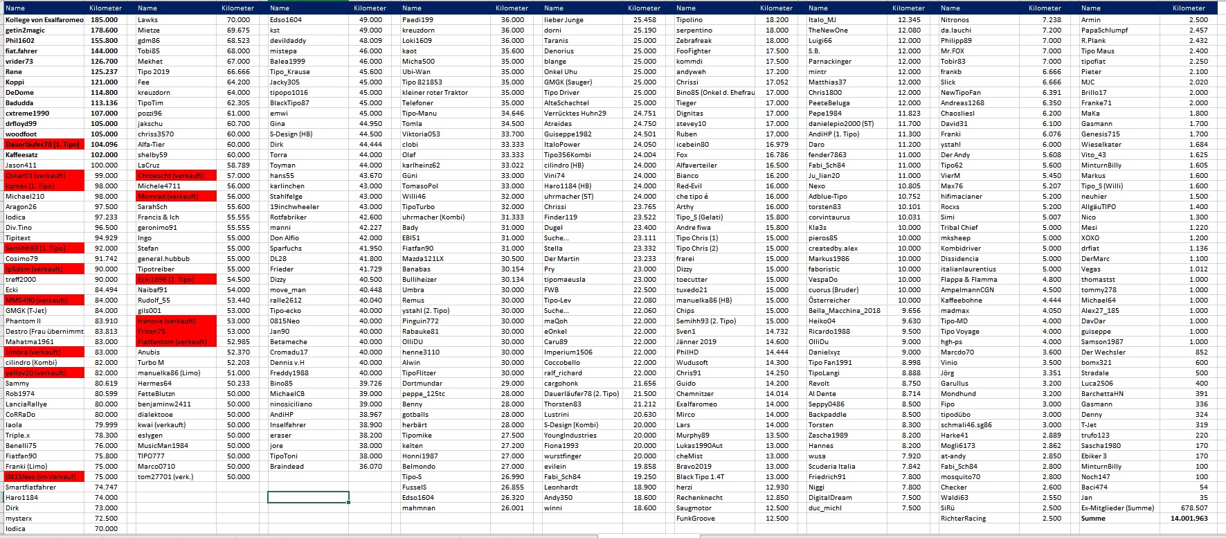 Na, dann bleiben die 14 Mio. Kilometer stehen. Hatte bei Frank die 105.000 eingetragen, die es aber noch gar nicht sind. Und nun kommt Thomas mit über 34.000 um die Ecke.