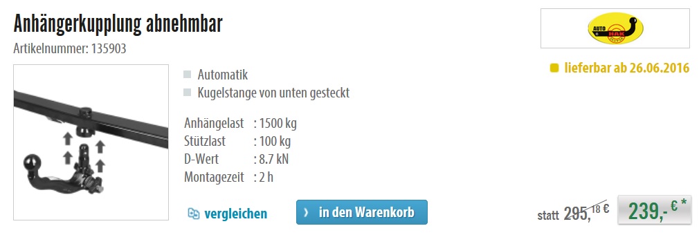 bei Rameder sind jetzt Anhängerkupplungen gelistet. Ich gucke da nun nicht jeden Tag rein, aber ich sag mal, vor ner Woche gab es die noch nicht. Sind allerdings noch auf "nicht Lieferbar", aber immerhin tut sich was.