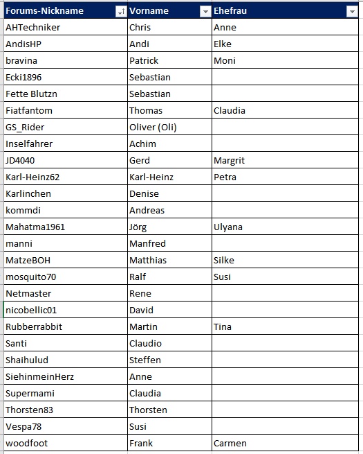 Forums-Nicknamen & reale Vornamen