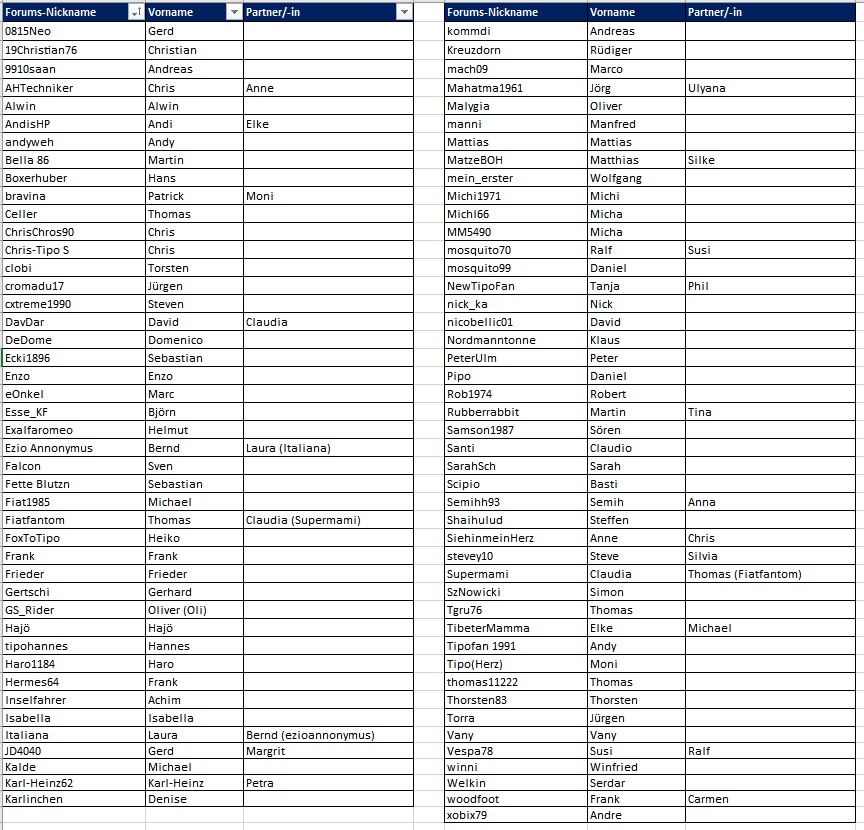 Nö, die meisten stellen sich ja nicht vor oder wollen nicht erwähnt werden. Wer in die Liste will, bitte Bescheid geben.