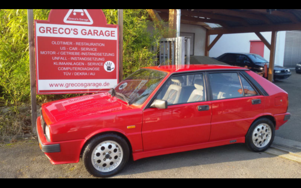 Der Lancia Delta in Monza-Rot. Ich erinnere mich noch gut daran wie ich bei Regen hier immer bergauf anhalten musste und das Wasser aus den Zündkerzen schöpfen