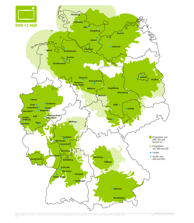 • Die neuen Fernseher haben meist einen DVB-T2 Anschluss,