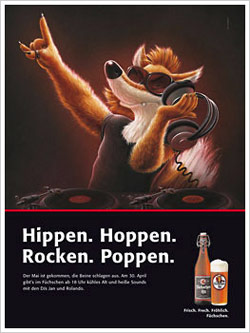 Genau wie mit der Werbung der Füchsen Brauerei hier in Düsseldorf, die finde ich auch super, die hatten auch mal ne Zeitlang richtig provokante Sprüche drauf, gefiel mir sehr. Leider haben sich da einige Vollpfosten die nix zu tun haben beschwert...
