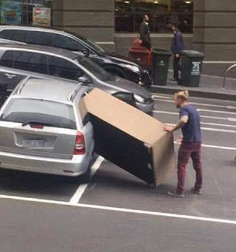 Ja, bloß der hintere Trägermensch sitzt im Fahrzeug fest!