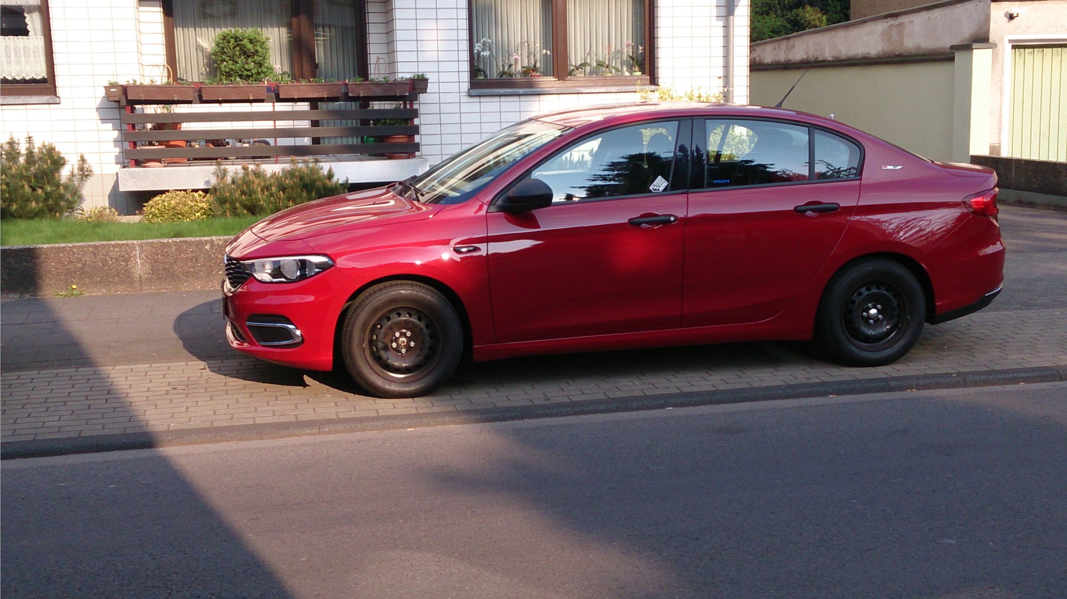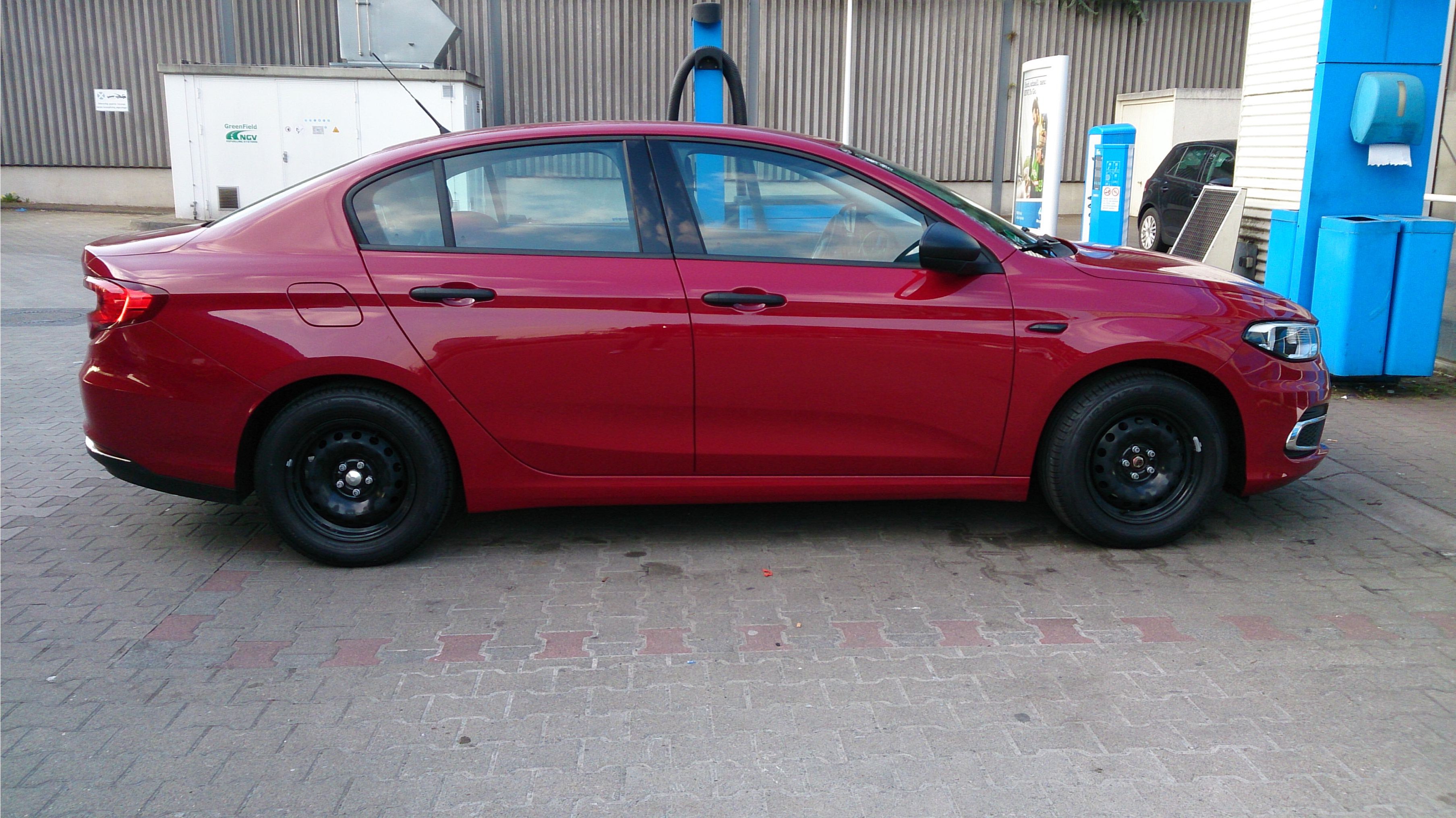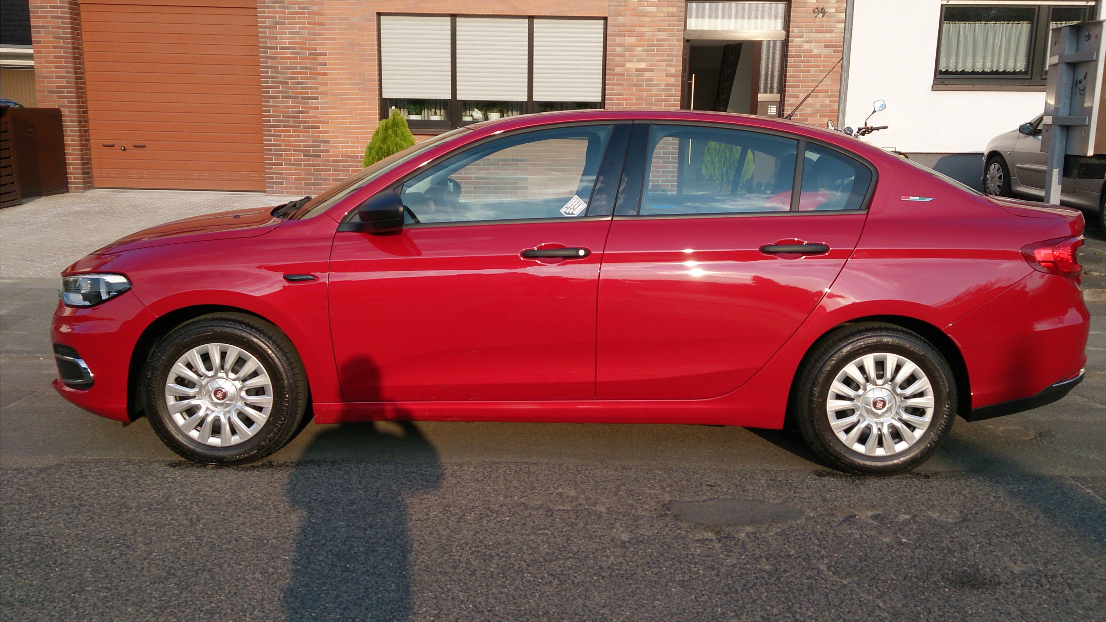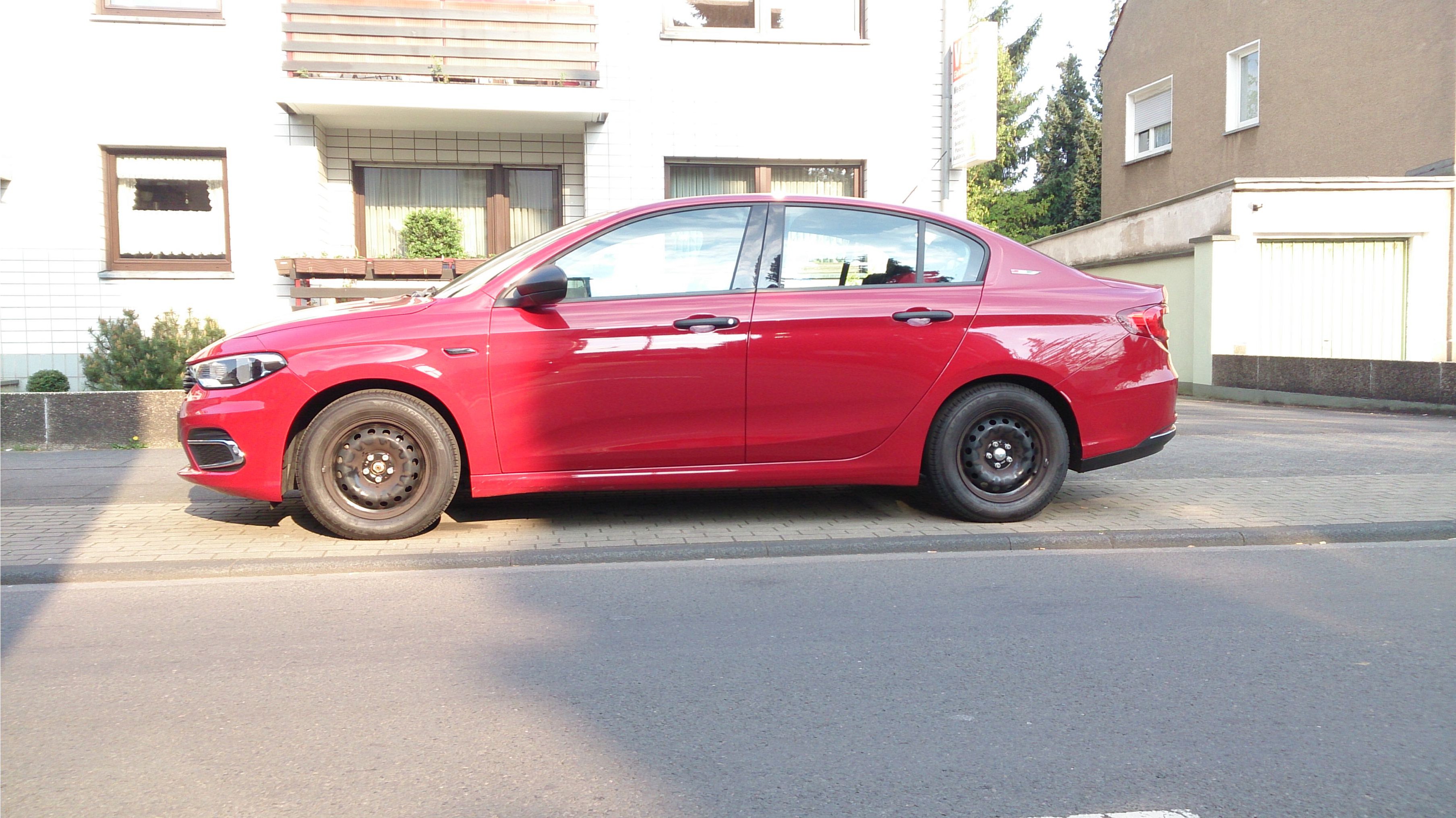 Was ihm und mir natürlich auch aufgefallen war, das die Stahlfelgen gar nicht dazu passen. Nun sind ja meine 16 Zoll Alus mit den Winterreifen bestückt, und die Originalfelgen 15 Zoll mit Fiat-Kappen versehen, und diese sind nun auch drauf. Ihr seht auf den Fotos, das ist suboptimal. Also mit den 16 Zöllern wird das exakt und stimmig passen. Freue mich schon auf den Winter und nächsten Reifenwechsel.