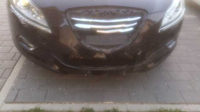 Eine Dame, hat beim Ausparken nicht aufgepasst und ist rückwärts mit ihrem Benz an mein Auto gefahren.