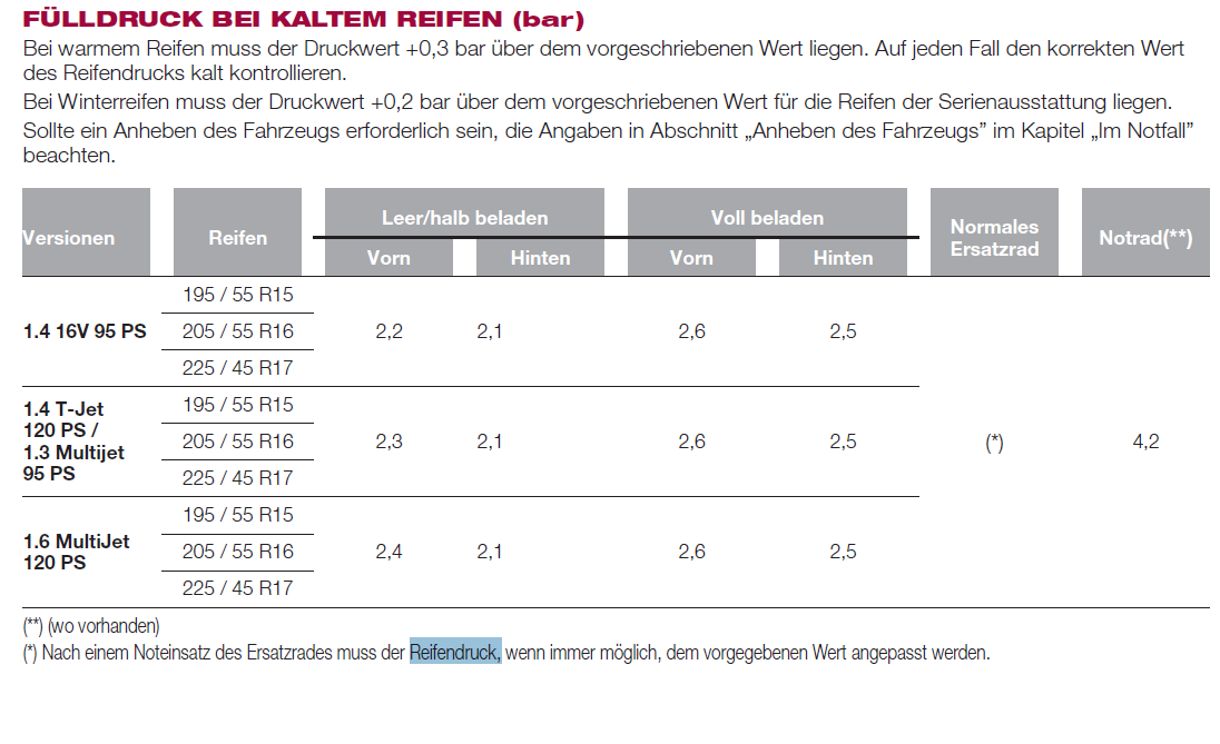 Die Infos über den Reifenfülldruck findest du im Handbuch unter technische Daten!