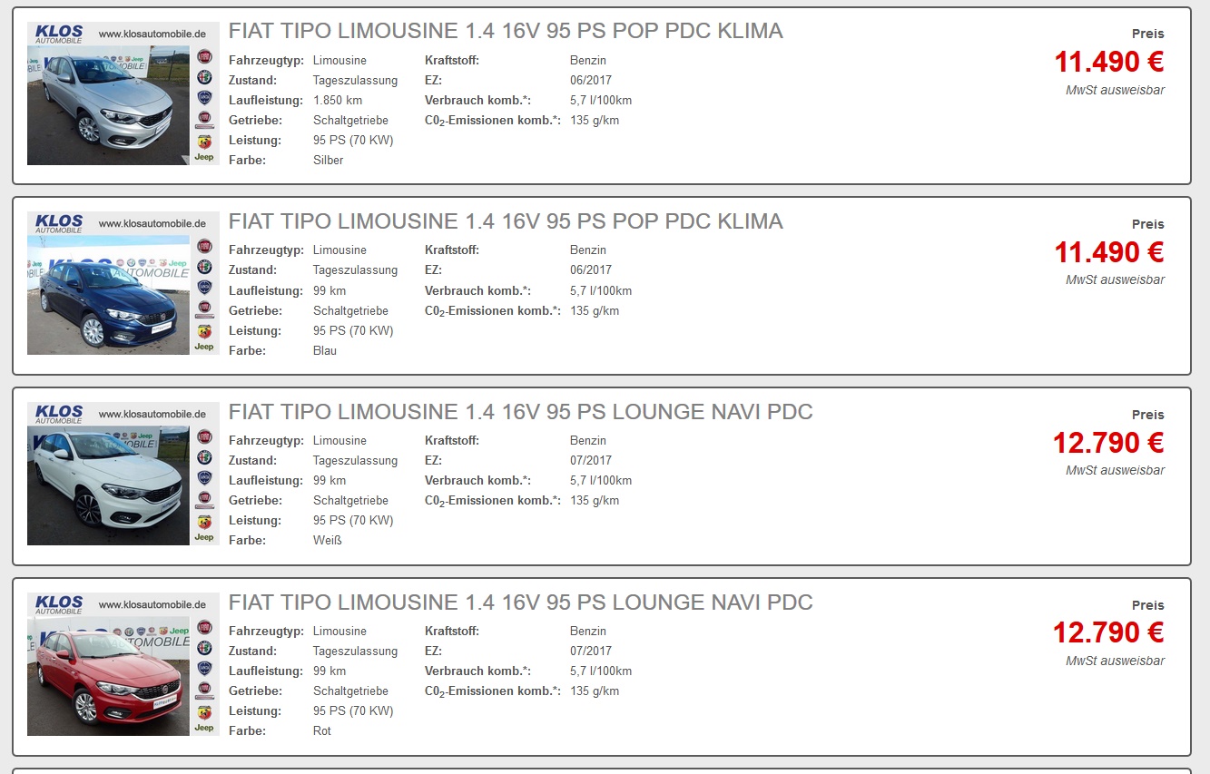 Da kann man schon den einen oder anderen Schnapper machen. Die Fahrzeuge wurden teilweise Mitte 2017 zugelassen; ob er die alle los wird.....