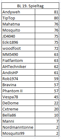 5 Tipper hatten 5 von 9 Punkten, an dieser Stelle möchte ich mal Susi hervorheben 5 von 9 Punkten