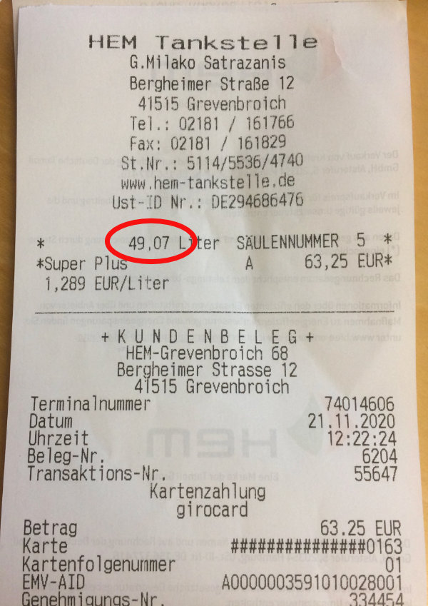 Real: 8,48 LiterDas war also das 102 Oktan -Experiment, jetzt gibt´s wieder das gute 95er.