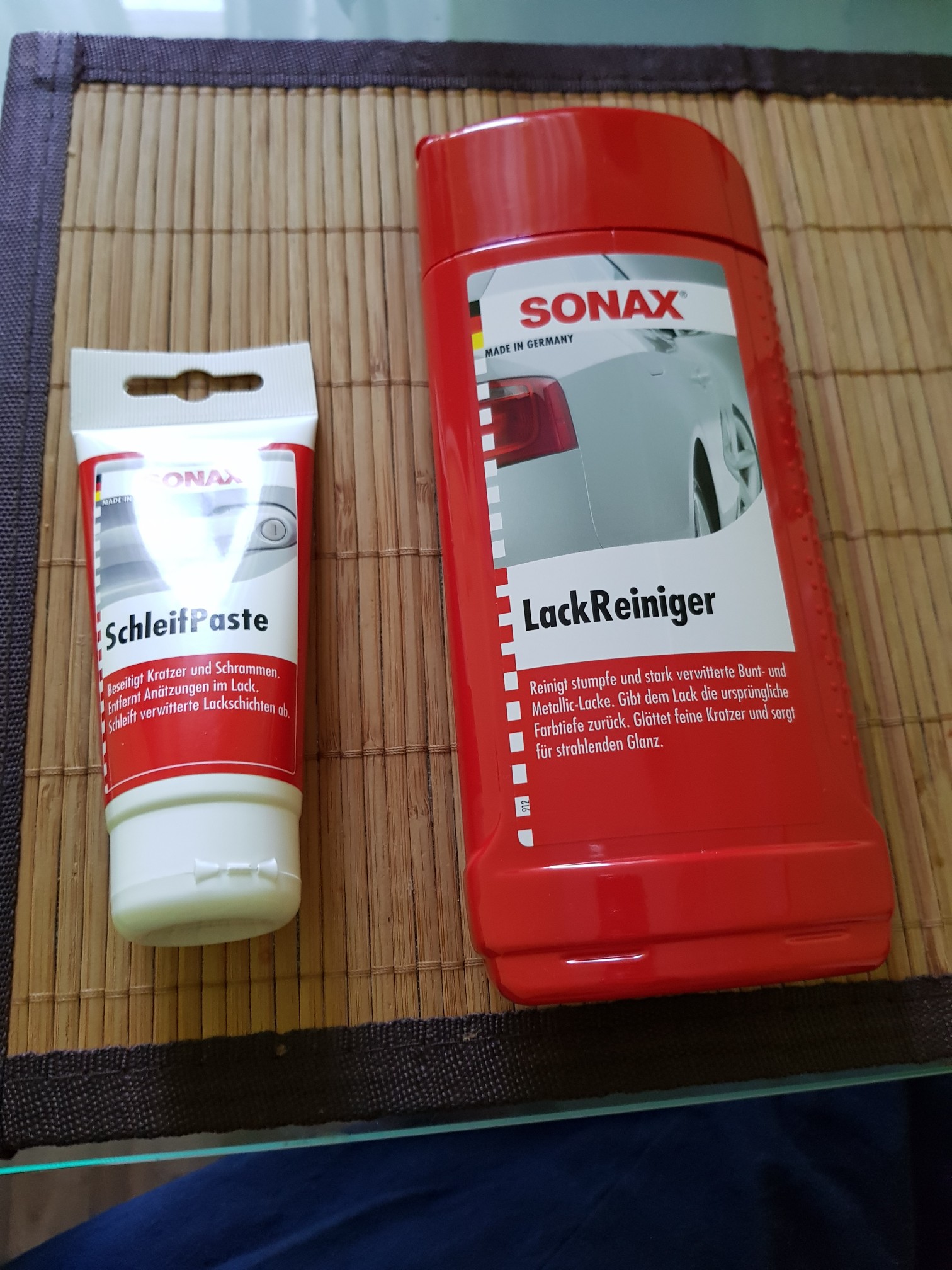 Nicht die Paste nehmen, die ist viel zu agressiv! Wenn du damit auf dem Lack arbeitest, trägst du zuviele Lackschichten ab! Nimm den Lackreiniger und arbeite vorsichtig, kreisende Bewegungen, nicht zu sehr aufdrücken, taste dich heran und schau ob eine Besserung eintritt. Denk daran, nach fest kommt ab, zählt auch für Lack!