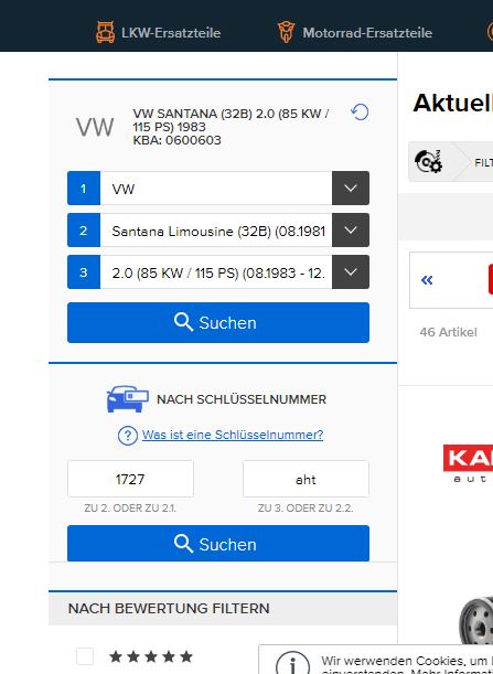 Funfact: Mit der Schlüsselnummer 1727 AHT schmeißt er bei allen gängigen Portalen den den VW Santana raus ![]()